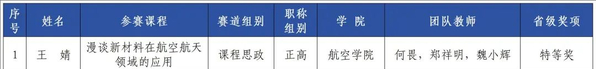 近日,第四届江苏省高校教师教学创新大赛获奖名单公布,公司王婧教授团队《漫谈新材料在航空航天领域的应用》课程荣获课程思政正高组特等奖,刘荣梅教授团队《理论力学》课程荣获基础课程组一等奖。