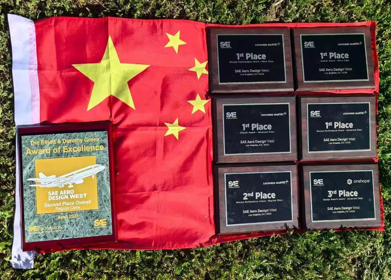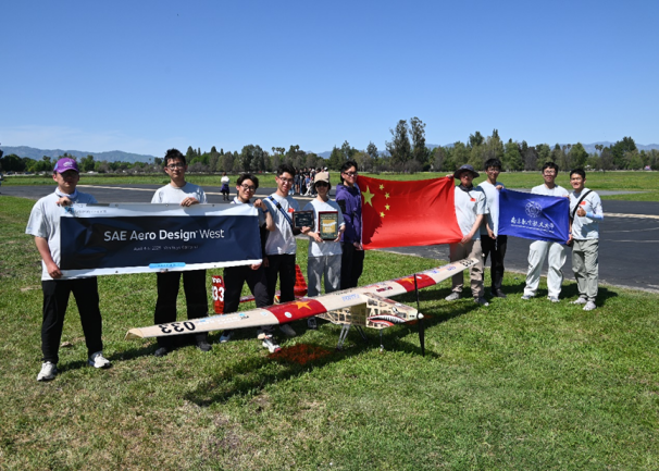 近日,2025SAE国际航空设计大赛(SAE Aero Design West)在美国洛杉矶圆满落幕。永利3044集团官网2024级航空工程专业硕士研究生李秋实,2022级飞行器设计与工程专业本科生郭隆铭、张天宁、刘昱呈、邹宗良、秦保爽,2023级工程力学专业(钱伟长班)本科生姜志臻共7名员工参与赛事,斩获 4 枚金牌、2 枚银牌、1 枚铜牌。其中郭隆铭、张天宁、刘昱呈、姜志臻随队赴美,在国际舞台中一展“砺志奋进,追梦蓝天”的航空风采,书写了靓丽青春篇章。