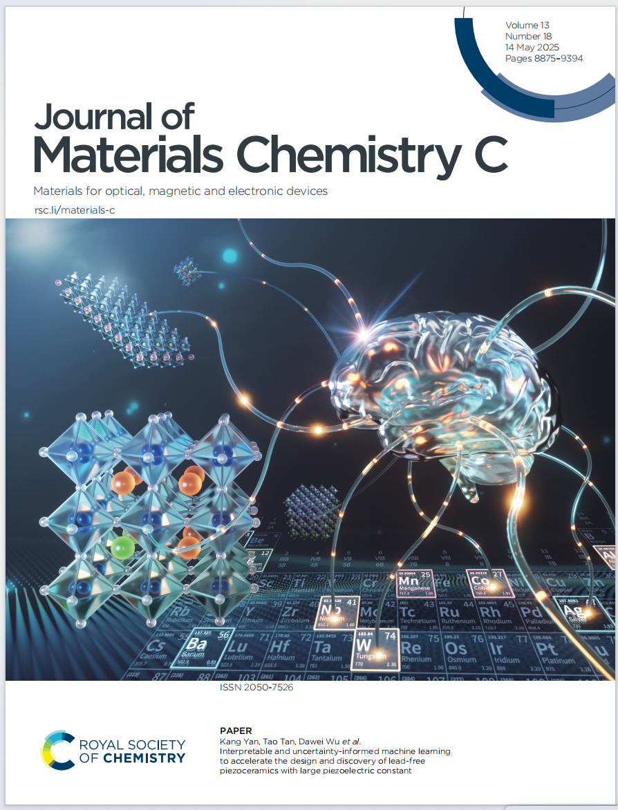 在压电材料研发方面,研究团队首创"可解释性人工智能+不确定性评估"的主动学习框架,通过GBDT+SHAP特征解析与蒙特卡洛Dropout技术的创新融合,成功突破传统试错式的材料研发模式。该技术体系指导设计的铌酸钾钠基无铅压电陶瓷,压电系数大幅提升至商用PZT-5A水平(d33=348pC/N),同时计算效率较同类方法提升约33%。基于此数据驱动的材料设计框架,在材料化学领域高水平期刊JMCC发表了题为“Interpretable and uncertainty-informed machine learning to accelerate the design and discovery of lead-free piezoceramics with large piezoelectric constant”的研究论文,并被选为封面文章和热点文章(DOI: 10.1039/d5tc00865d)。论文第一作者为永利3044集团官网博士研究生胡珩,指导老师为永利3044集团官网吴大伟教授、严康副研究员和澳门理工大学檀韬副教授。