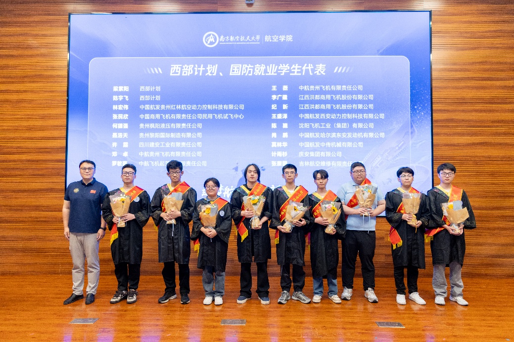 董昊为西部计划、国防就业毕业生代表颁发绶带。从将军路的课堂奔赴西部的山原田野,从明故宫的实验室奔赴国防的一线阵地,永利3044集团官网的毕业生们将“航空报国”的南航基因刻进行囊,用选择写下“强国有我”的青春注脚。