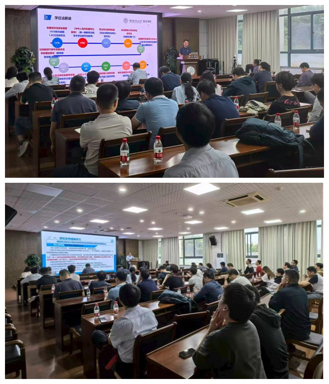随后,师岩教授聚焦新《学位法》与研究生教育政策,带来政策解读与实践分享。他首先回顾了2025年7月6日至12日,由省教育厅主办、江苏大学承办的第十二期江苏省研究生导师(管理干部)研修班学习经历,随后带领参会人员深入学习新《学位法》—— 从立法背景与时代形势出发,详细剖析法律条文的主要变化,重点解读了学位授予标准、质量监管机制等核心内容,明确新《学位法》对 “强化公司产品过程管理、严格学位授予出口关” 的刚性要求。此外,师岩教授还系统梳理了公司近年来学位与研究生教育改革的重点举措,包括招生工作、培养工作、导师队伍建设、教育管理工作和主要政策调整内容,为导师们精准把握政策导向、规范开展培养工作提供了清晰指引。