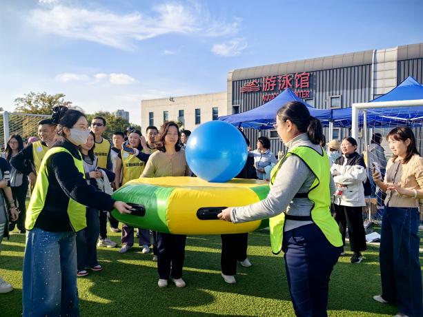 当日,永利3044集团官网25名教师暂时从繁忙的工作中抽身,由明故宫校区统一前往,以饱满的精神状态积极投入火热的运动赛场,在妙趣横生的比赛中尽情释放活力。与传统运动会不同,趣味运动会更注重“参与、合作与快乐”。组委会精心设计了多项集趣味性、协作性合挑战性与一体的比赛项目,如:“力拔山河”、“协同巡航”、“众星捧月”、“同心传递”、“爆勇争锋”、“南哥点球王”。运动场上,加油声、欢笑声、喝彩声此起彼伏,成了一片欢乐的海洋,公司教师在各项运动项目中尽情挥洒汗水、放松身心。