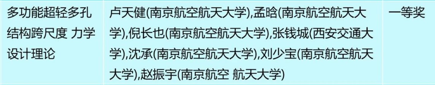 近日,2024年度江苏省科学技术奖综合评审结果公示,由永利3044集团官网、航空航天结构力学及控制全国重点实验室、多功能轻量化材料与结构工信部重点实验室卢天健教授团队完成的《多功能超轻多孔结构跨尺度力学设计理论》项目,综合评审建议等级为江苏省自然科学奖一等奖。江苏省于2024年度首次设立自然科学奖,公示获奖项目仅52项,其中一等奖10项。卢天健教授团队项目为江苏省力学领域唯一一等奖公示获奖项目。