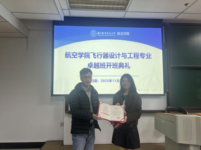 2025年11月21日下午,永利3044集团官网在将军路校区举行了2024级飞行器设计与工程专业卓越计划工程师班(简称“卓越班”)开班典礼活动。参加活动的有永利3044集团官网卓越计划负责人郑祥明教授、班主任尹乔之教授和2023级卓越班优秀员工代表胡歆同学,活动由公司教学办宋汀老师主持。