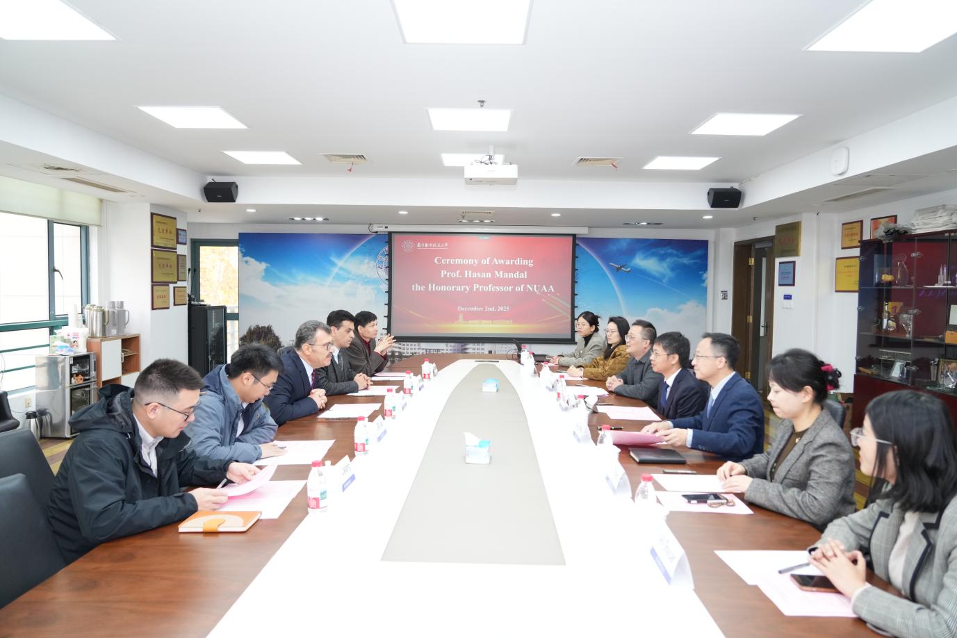 哈桑・曼达尔教授对受聘为南航名誉教授表达了诚挚的感谢。他高度肯定了南航的团队建设水平、科研创新能力和人才培养质量,对双方已开展的科研合作、人才联合培养等成果予以认可。同时,他表示未来将继续推动ITU与南航在联合实验室建设、高层次学术交流、师生互访等方面开展更深层次合作,助力两校在前沿科技领域实现协同创新。