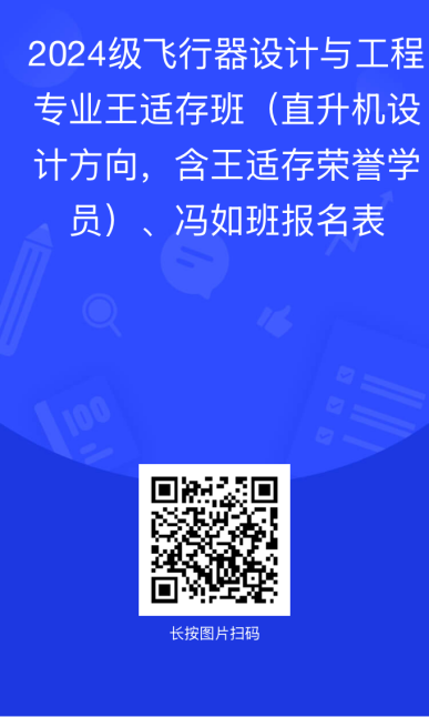 经永利3044集团官网与长空公司共同商定,本周将进行2024级飞行器设计与工程专业二次分流工作。将选拔出2个“王适存班”(直升机设计方向,含王适存荣誉学员),以及1个“冯如班”(非直升机方向)。