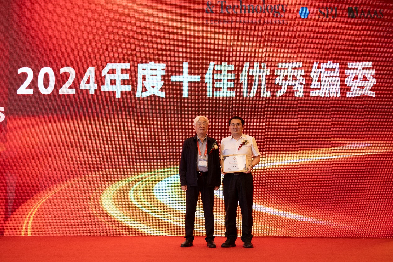 人民科学家叶培建院士为陈提教授颁发《Space》期刊年度优秀编委证书